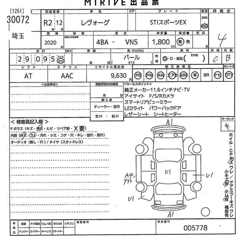 SUBARU LEVORG - лот 30072