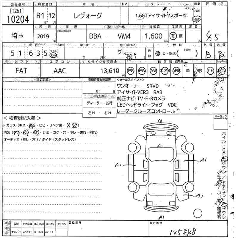 SUBARU LEVORG - лот 10204