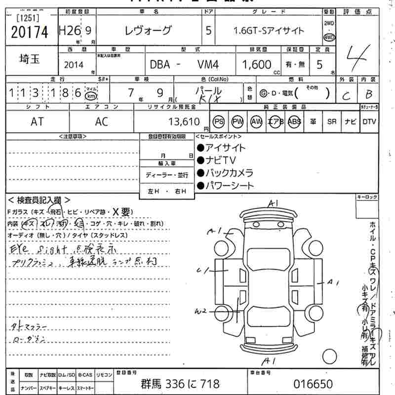 SUBARU LEVORG - лот 20174