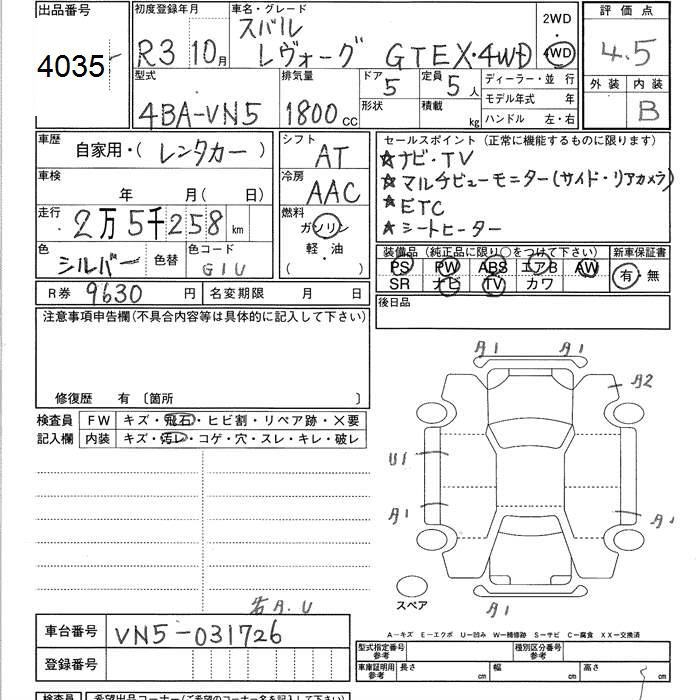 SUBARU LEVORG - лот 4035