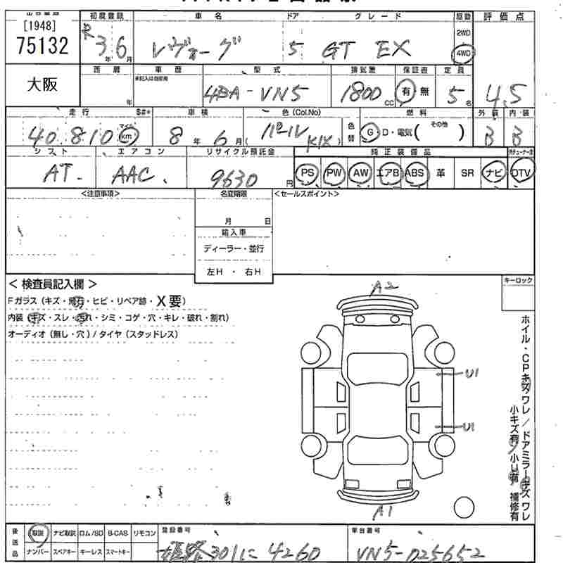 SUBARU LEVORG - лот 75132