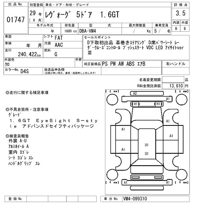 SUBARU LEVORG - лот 1747