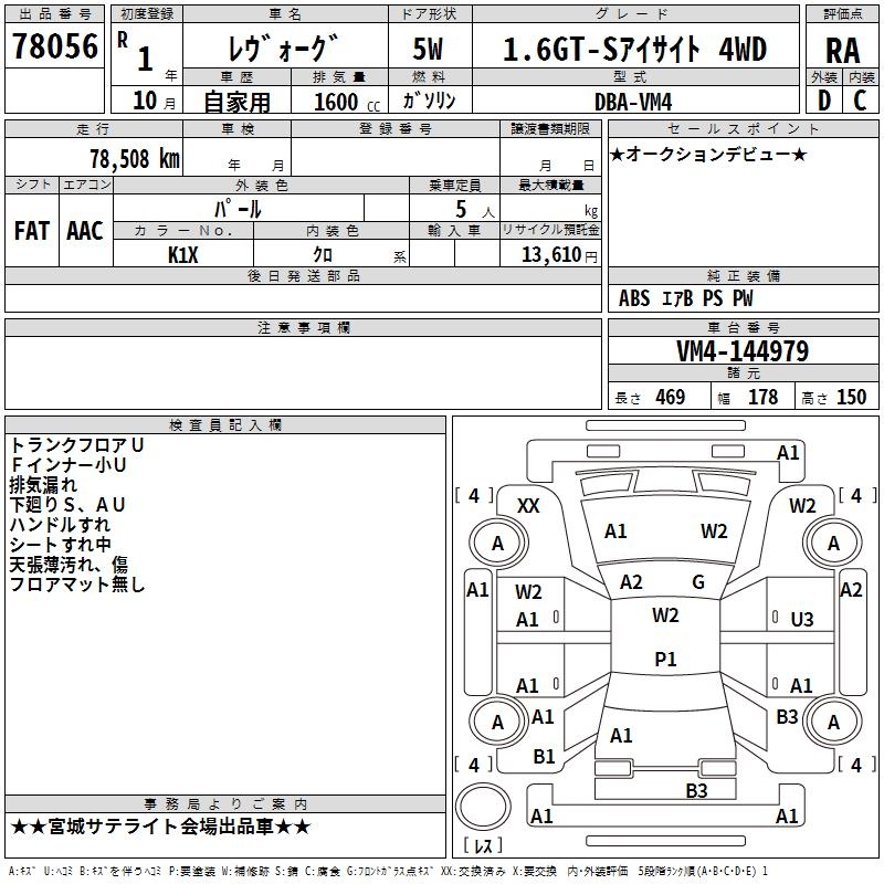 SUBARU LEVORG - лот 78056