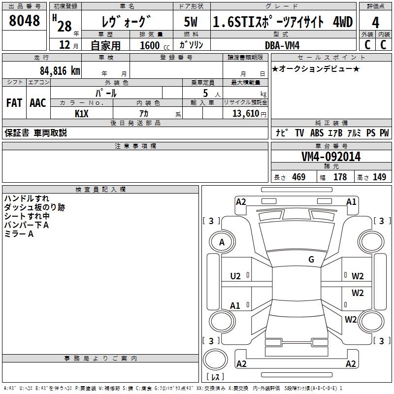 SUBARU LEVORG - лот 8048