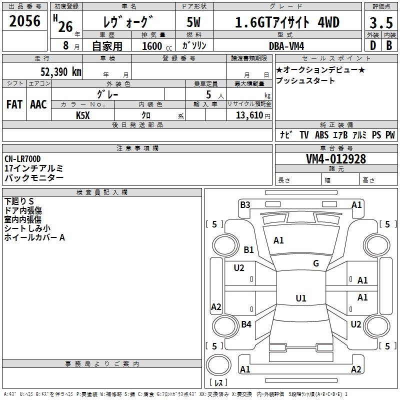 SUBARU LEVORG - лот 2056