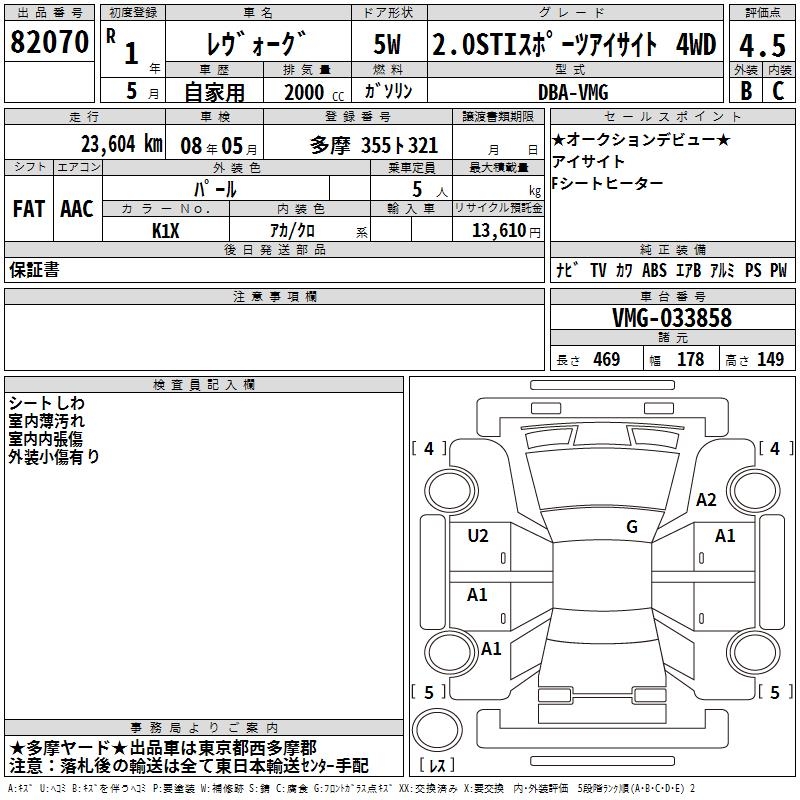SUBARU LEVORG - лот 82070