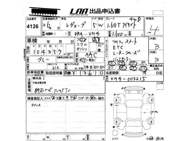 SUBARU LEVORG - лот 4126