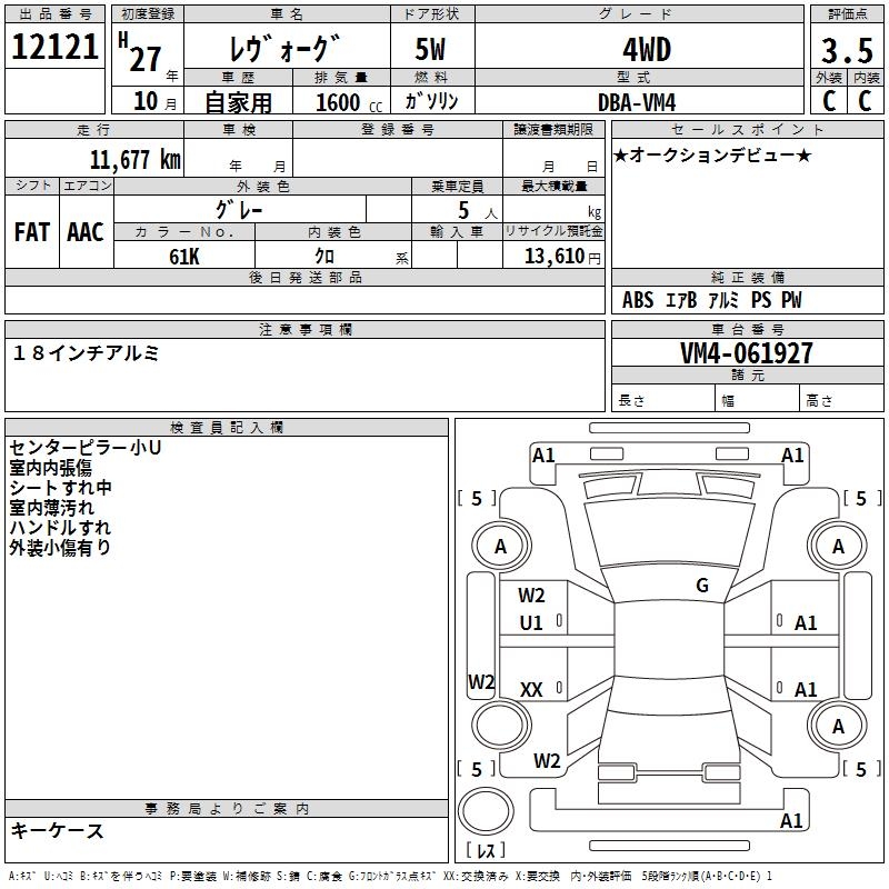 SUBARU LEVORG - лот 12121