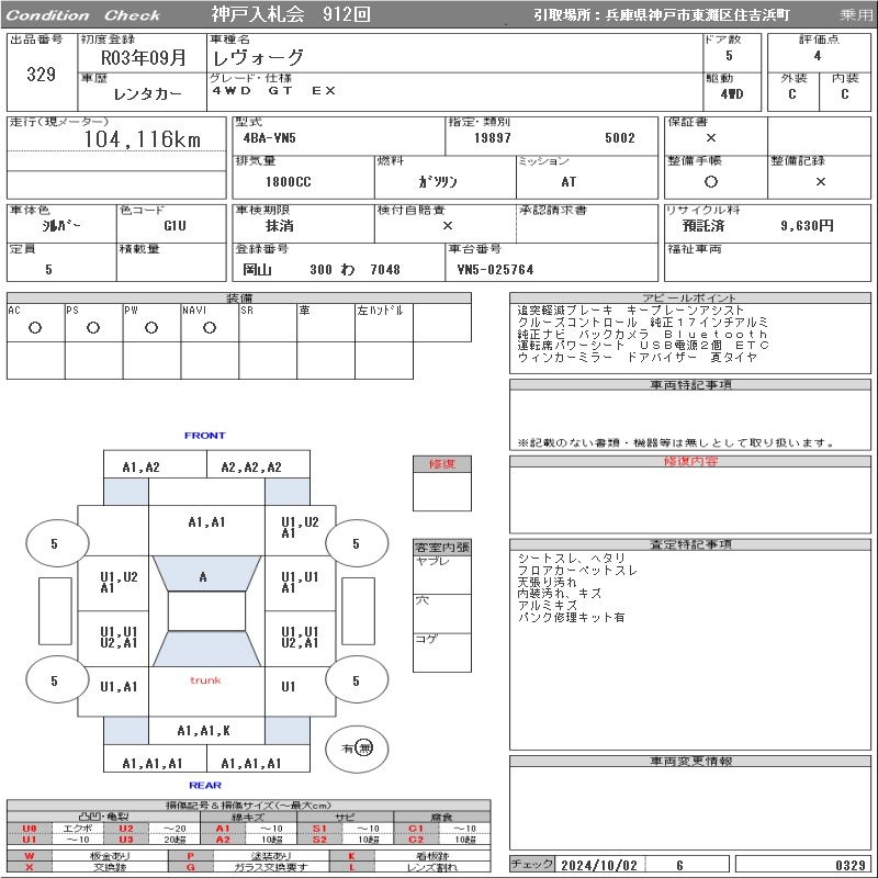 SUBARU LEVORG - лот 329