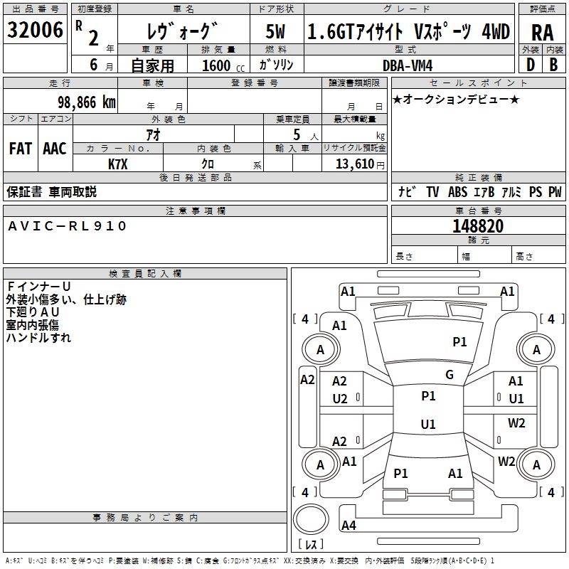 SUBARU LEVORG - лот 32006