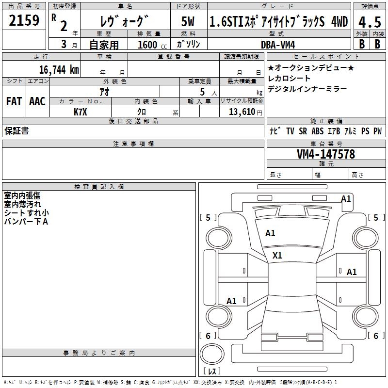 SUBARU LEVORG - лот 2159