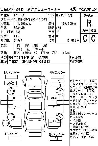 SUBARU LEVORG - лот 50143