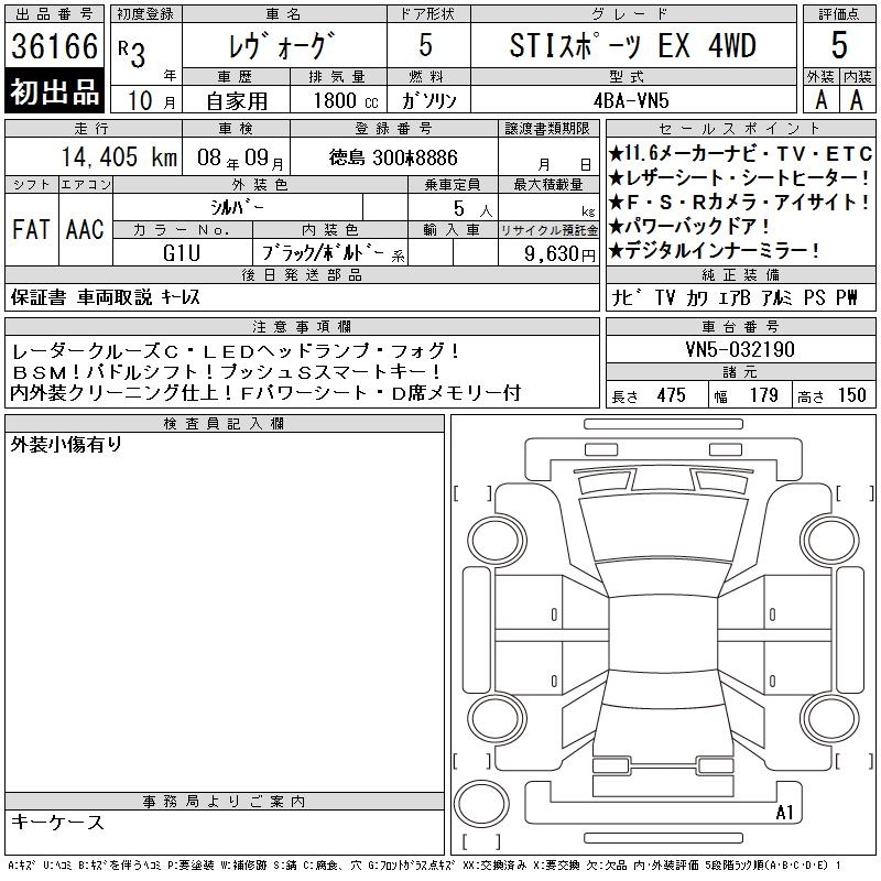 SUBARU LEVORG - лот 36166