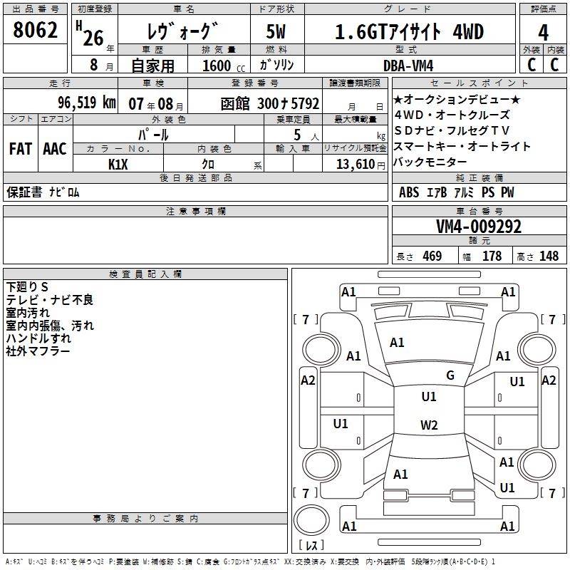 SUBARU LEVORG - лот 8062