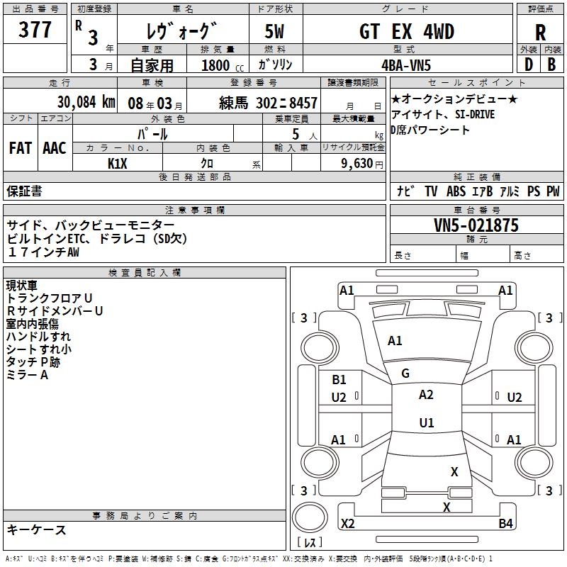 SUBARU LEVORG - лот 377