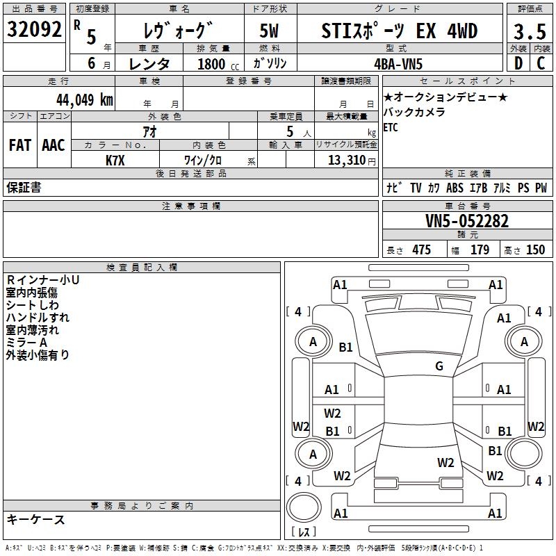 SUBARU LEVORG - лот 32092
