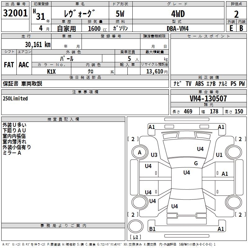 SUBARU LEVORG - лот 32001
