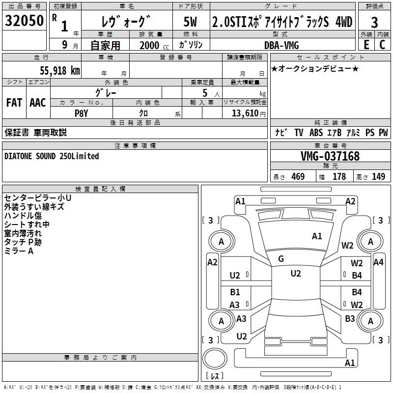 SUBARU LEVORG - лот 32050