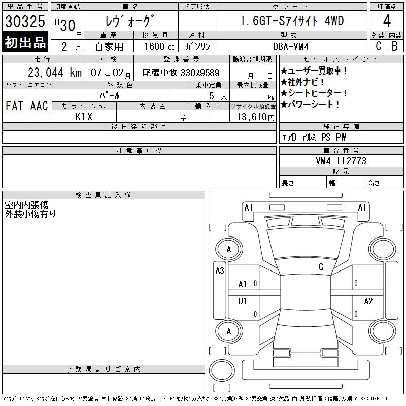 SUBARU LEVORG - лот 30325