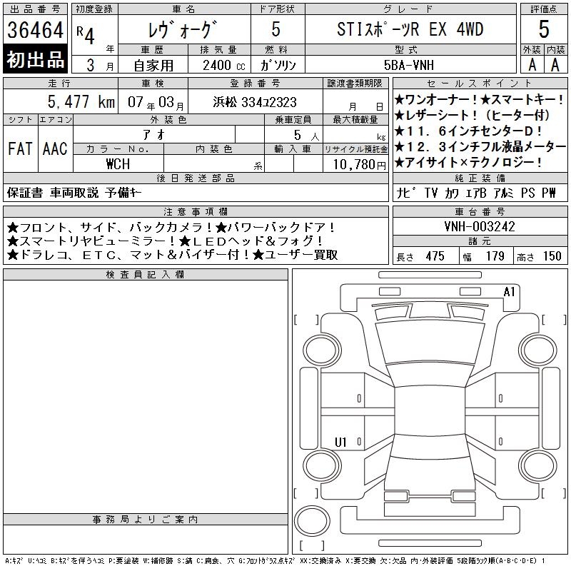 SUBARU LEVORG - лот 36464