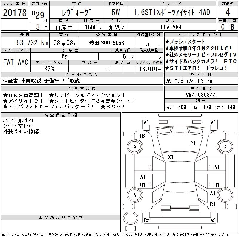 SUBARU LEVORG - лот 20178