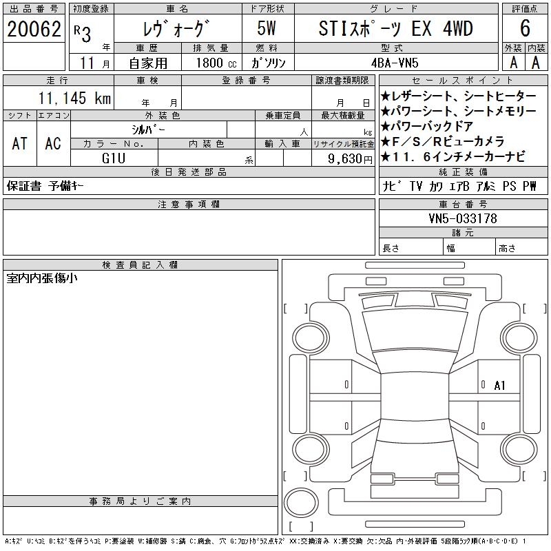 SUBARU LEVORG - лот 20062