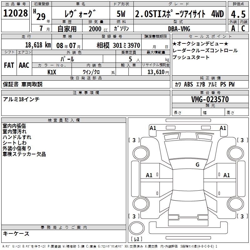 SUBARU LEVORG - лот 12028