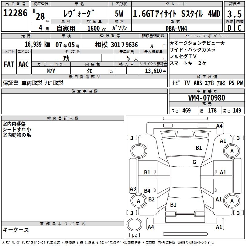 SUBARU LEVORG - лот 12286