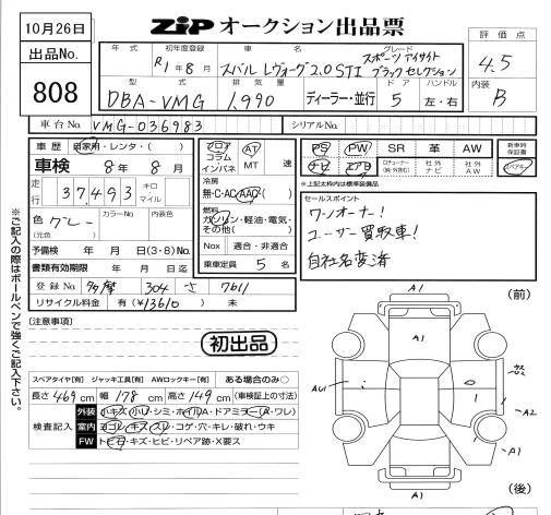 SUBARU LEVORG - лот 808