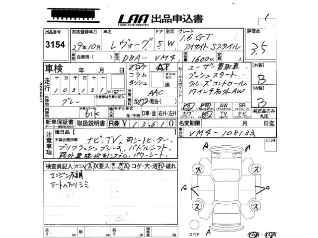 SUBARU LEVORG - лот 3154