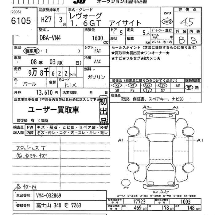 SUBARU LEVORG - лот 6105