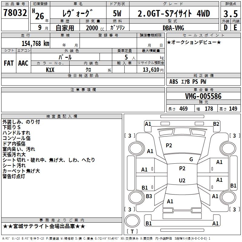 SUBARU LEVORG - лот 78032
