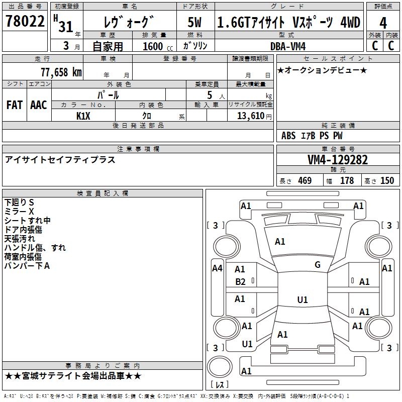 SUBARU LEVORG - лот 78022