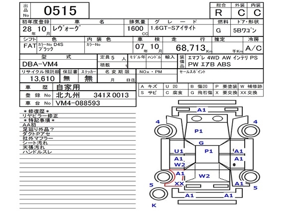 SUBARU LEVORG - лот 515