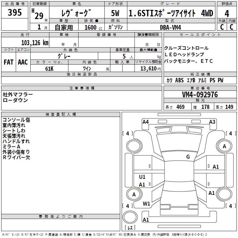 SUBARU LEVORG - лот 395