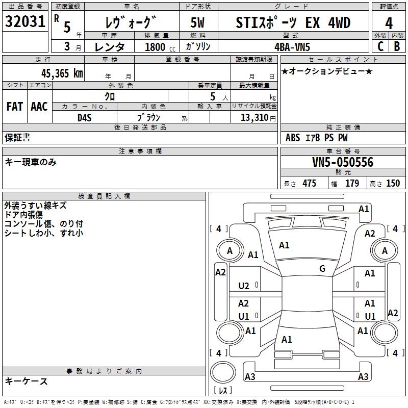 SUBARU LEVORG - лот 32031