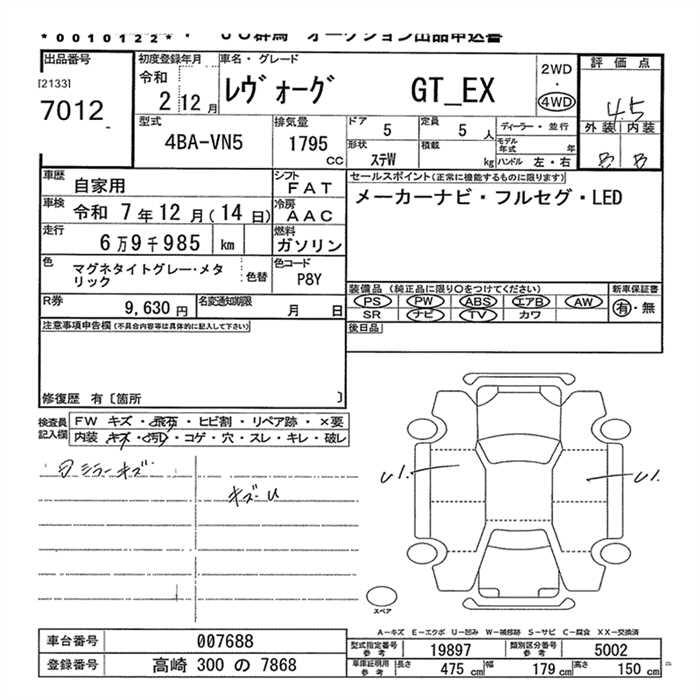 SUBARU LEVORG - лот 7012