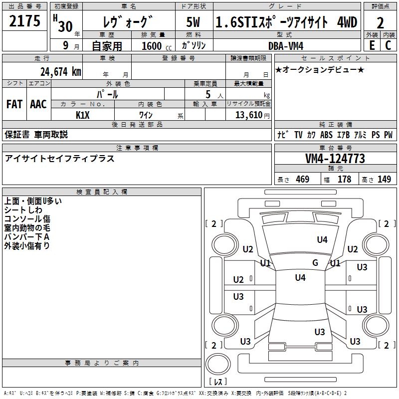 SUBARU LEVORG - лот 2175