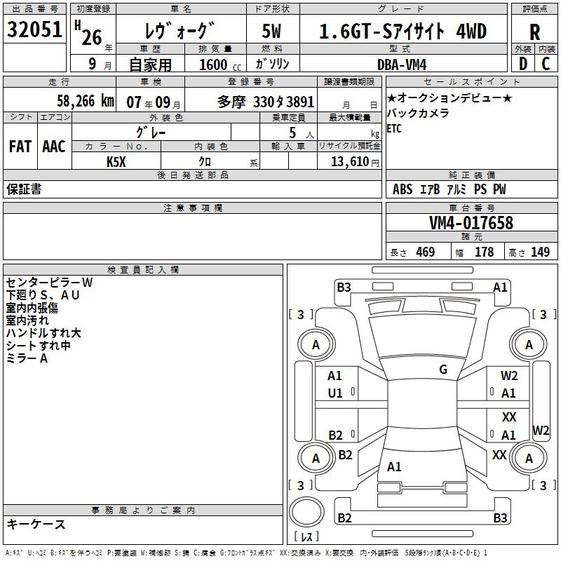 SUBARU LEVORG - лот 32051