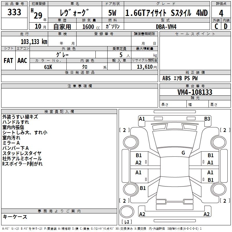 SUBARU LEVORG - лот 333