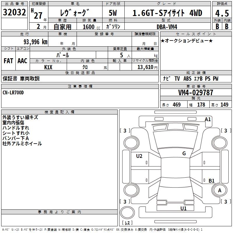 SUBARU LEVORG - лот 32032