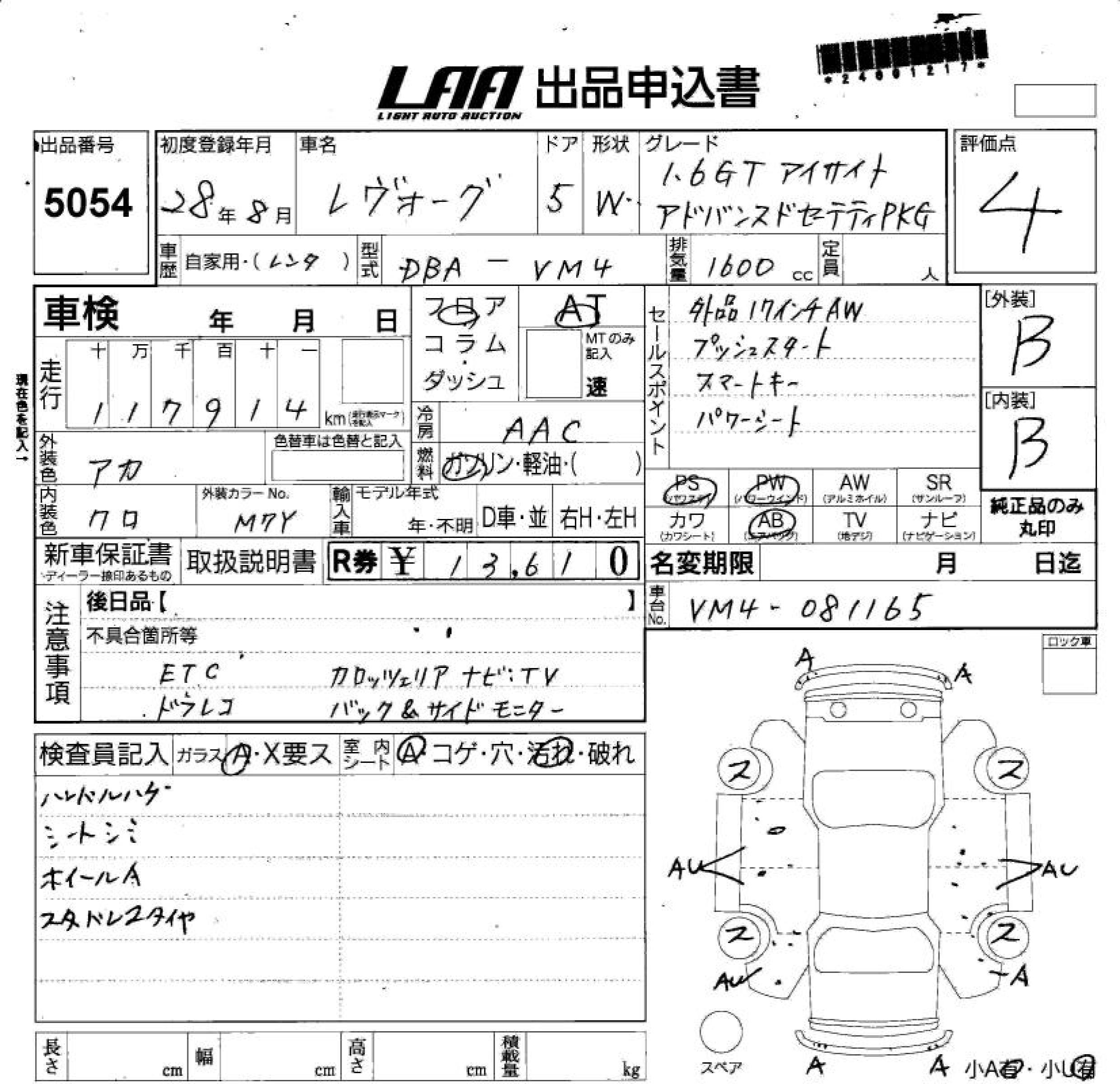 SUBARU LEVORG - лот 5054