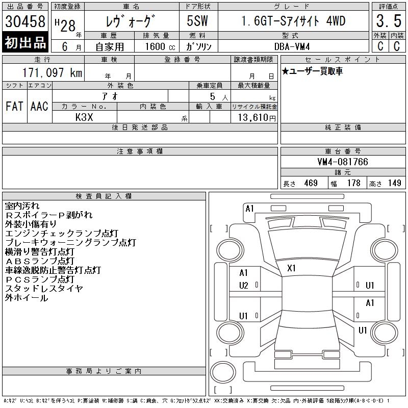 SUBARU LEVORG - лот 30458