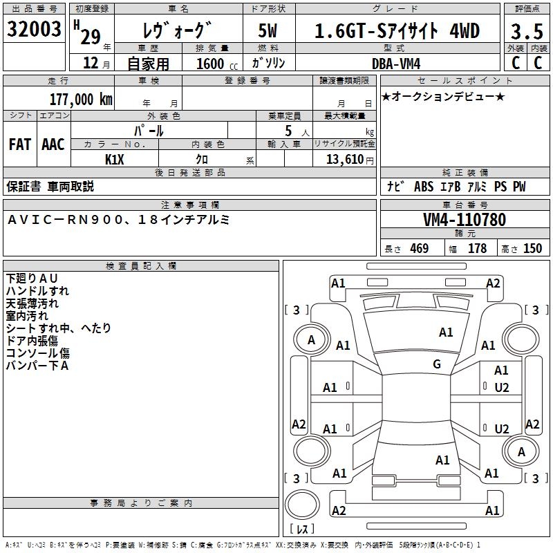 SUBARU LEVORG - лот 32003