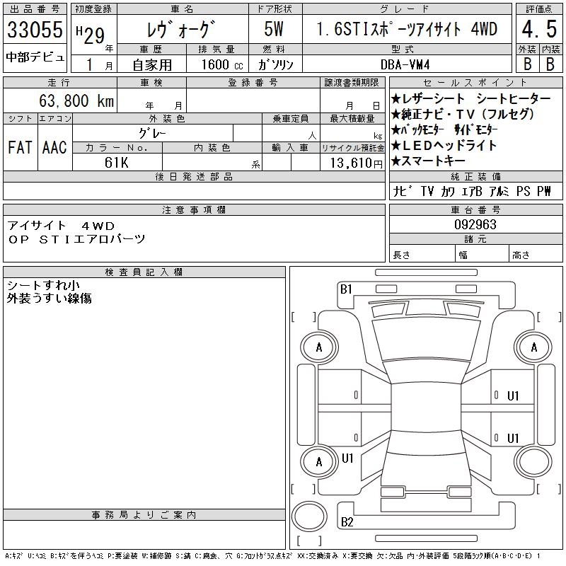 SUBARU LEVORG - лот 33055