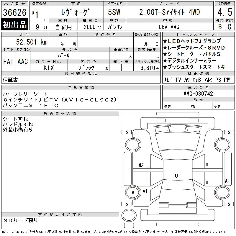 SUBARU LEVORG - лот 36626
