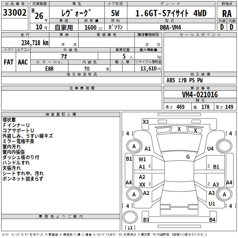 SUBARU LEVORG - лот 33002