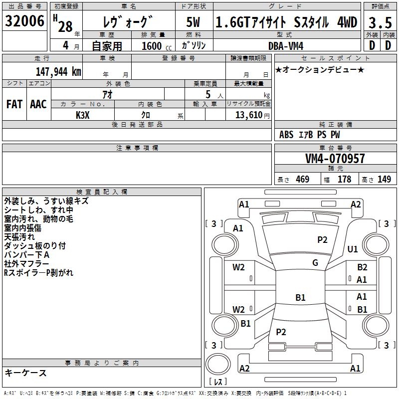 SUBARU LEVORG - лот 32006