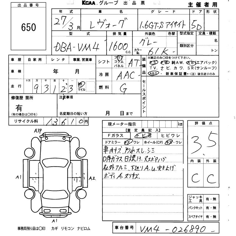 SUBARU LEVORG - лот 650