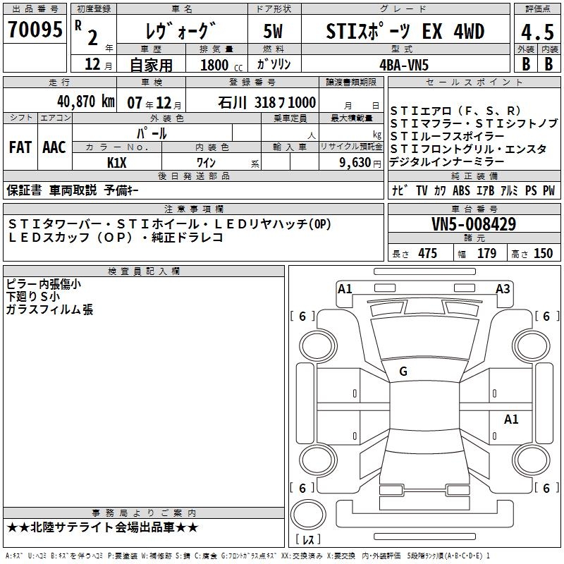 SUBARU LEVORG - лот 70095